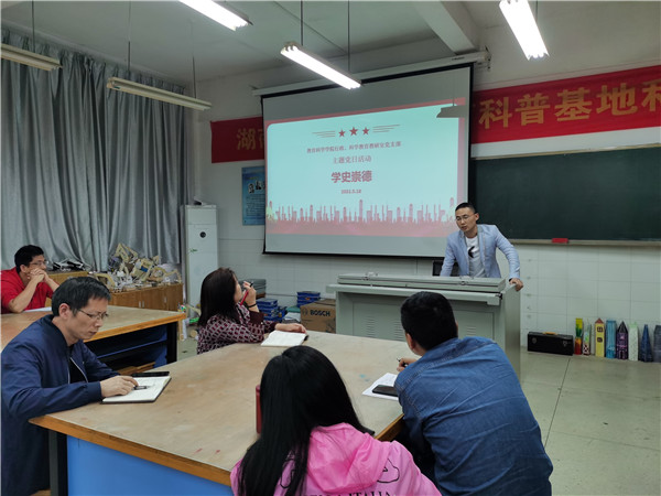 5月18日下午,教育科学学院行政、科学教育教研室党支部在玉衡楼南104教室举行党史学习教育“学史崇德”专题学习。此次专题学习由支部组织委员黄永亮同志主讲,支部副书记刘森林主持,除部分有课教师外,支部全体党员同志参加学习。未参加学习的同志将课余自行认真学习。