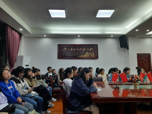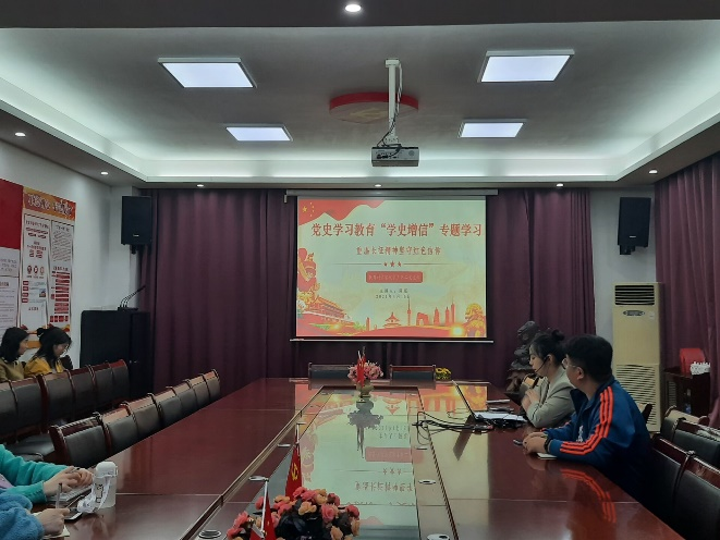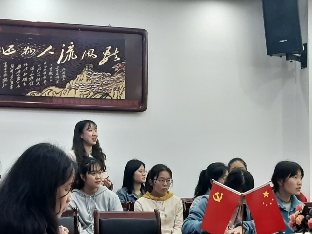 首先是支部书记廖弘宇老师进行发言,强调了作为一名青年学生党员,其学习党史的重要性和必要性,即继承与发扬党的成功经验和优良传统,也是领悟党的方针、坚定党的信念,通过对党的历史学习与总结,会有更深层次的领悟,也增强对党的认同感与归属感。