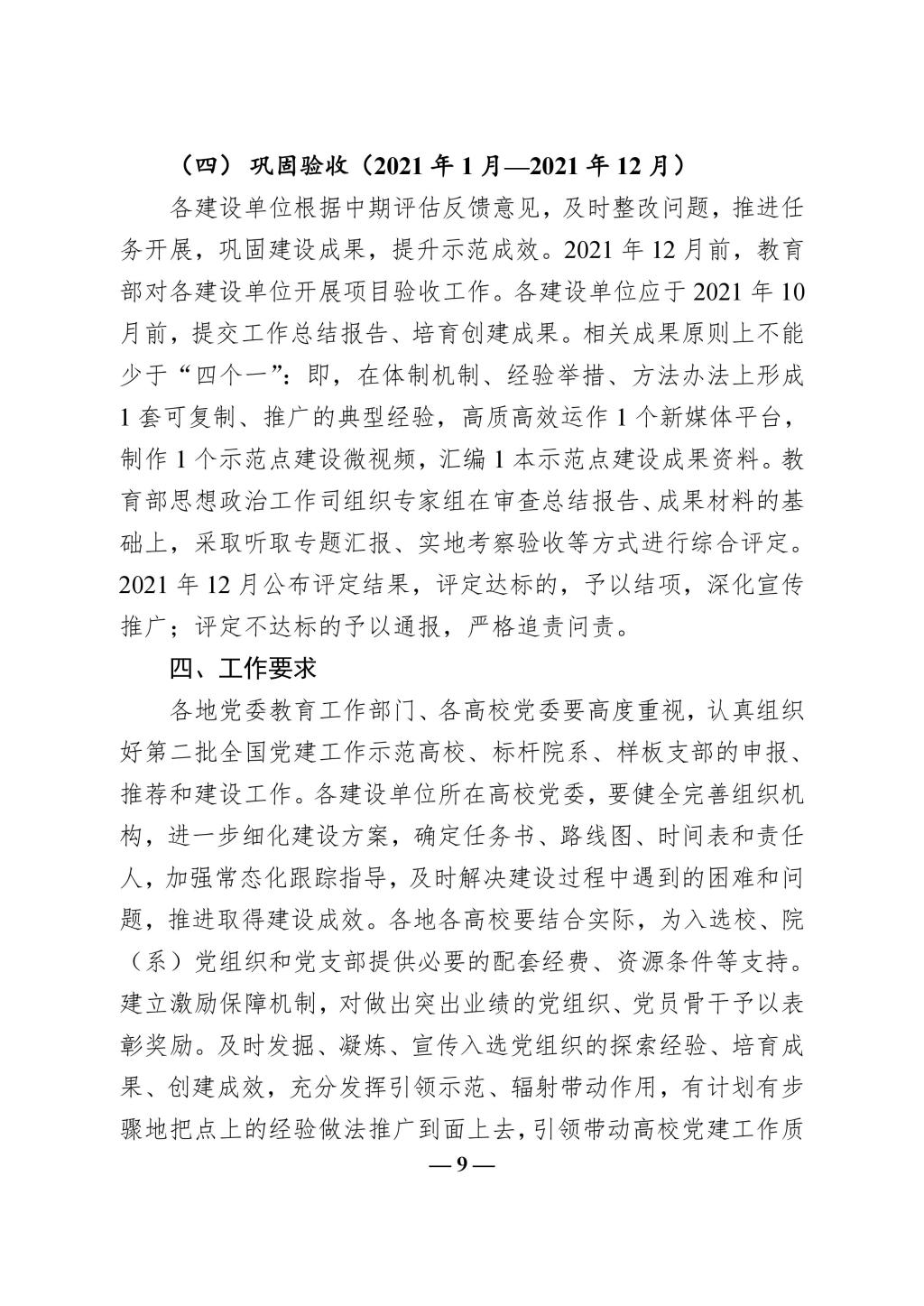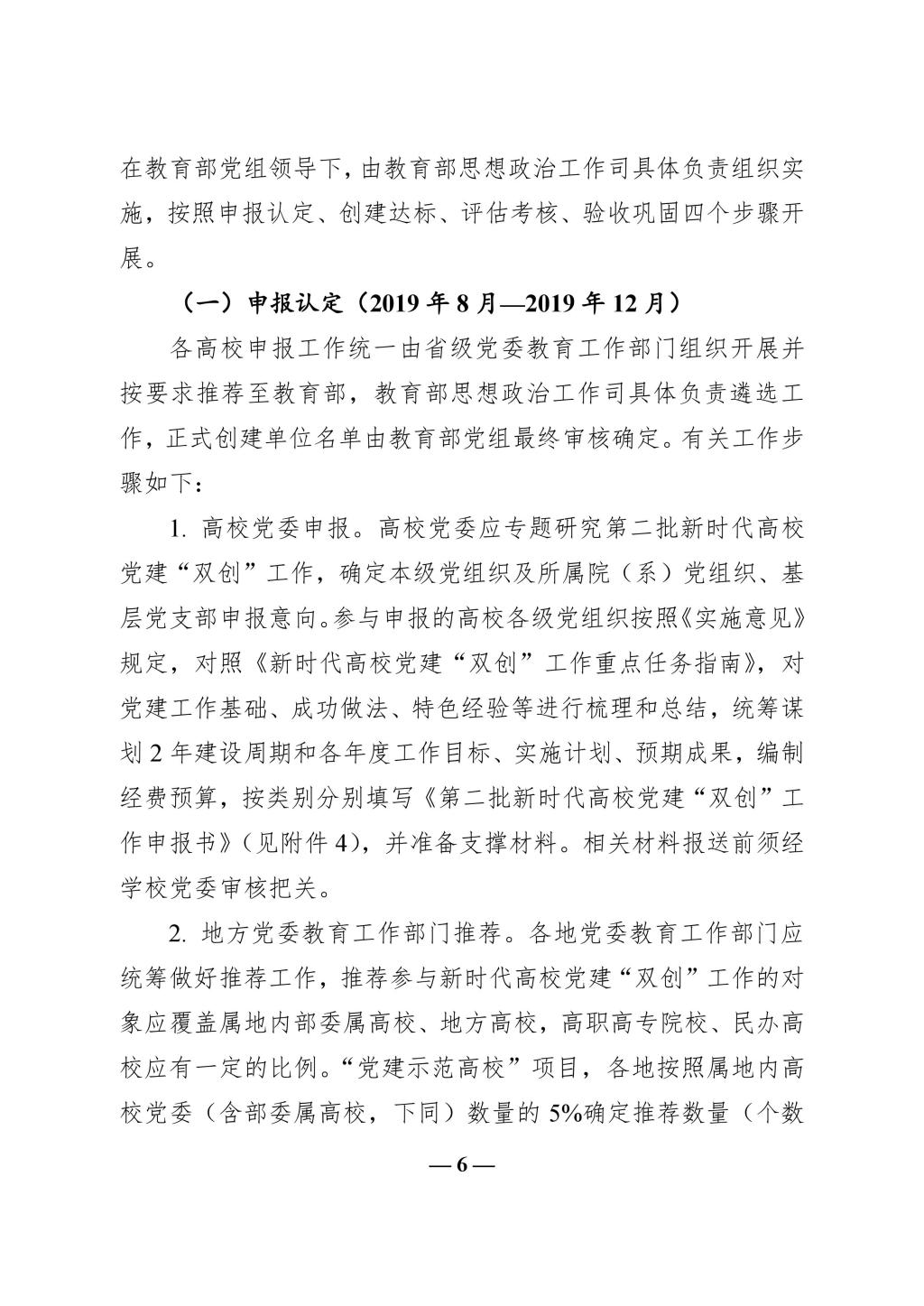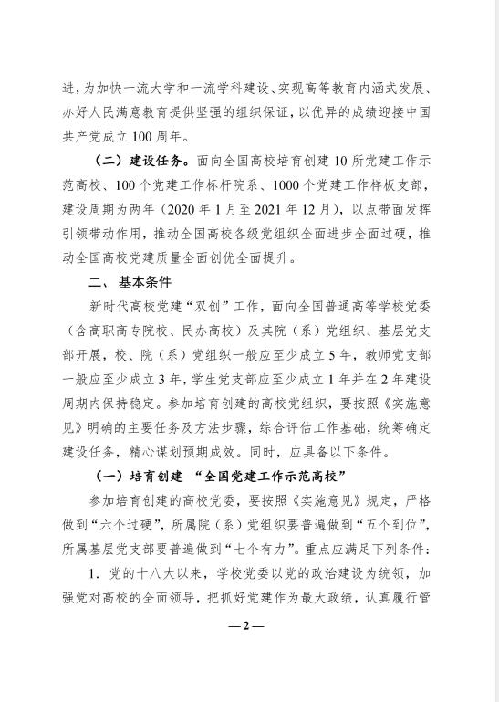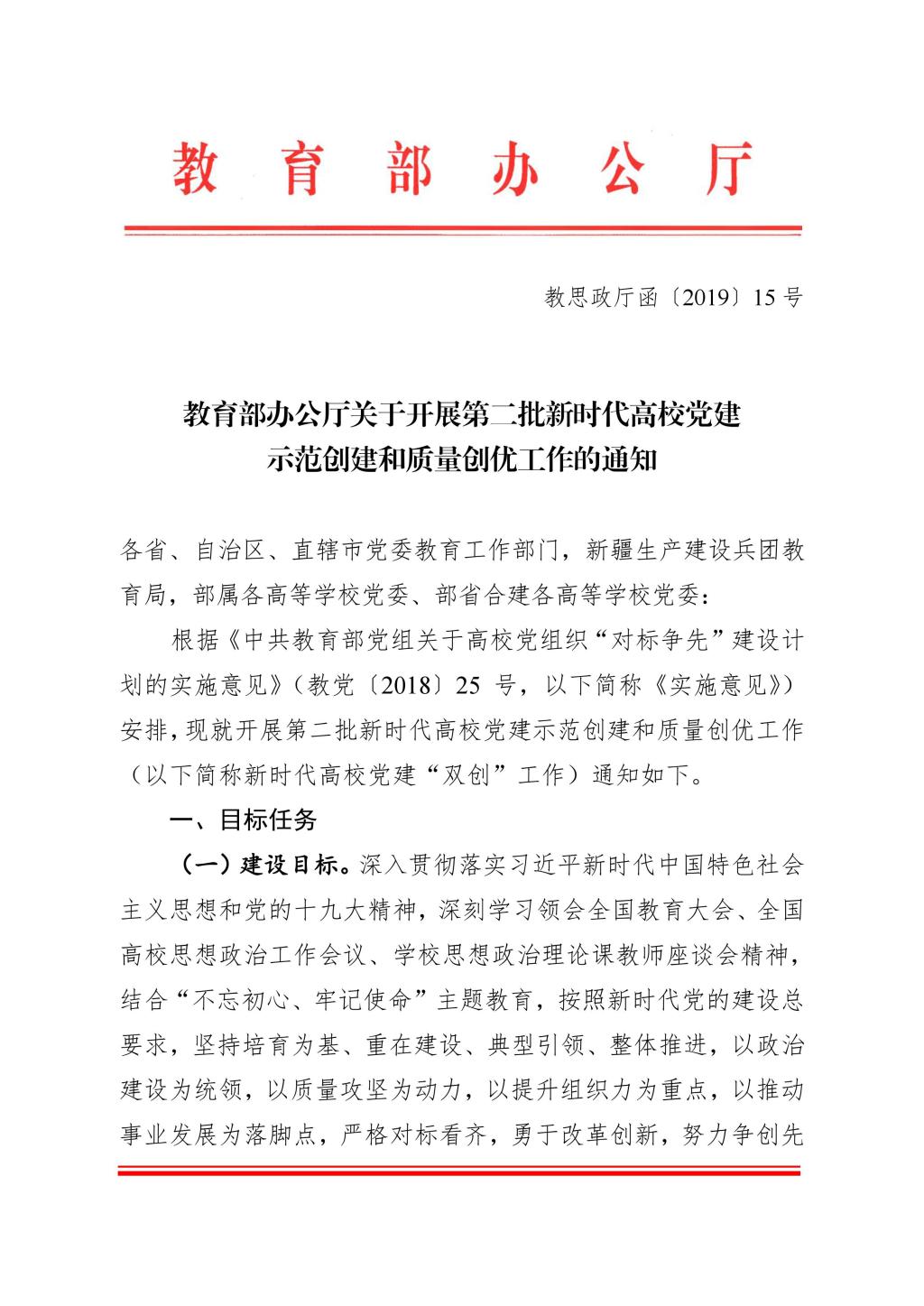 教育部办公厅关于开展第二批新时代高校党建示范创建和质量创优工作的通知