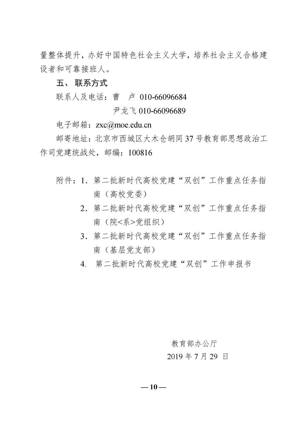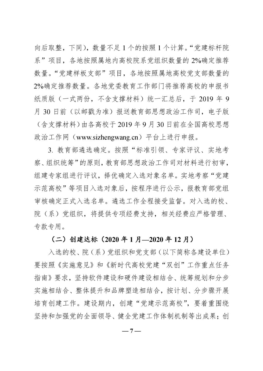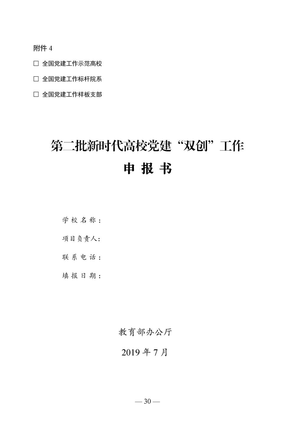 教育部办公厅关于开展第二批新时代高校党建示范创建和质量创优工作的通知