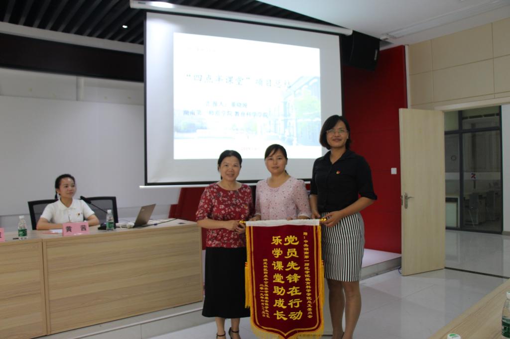在启动仪式上,首先由学生第一党支部书记董晓娅同志对共建项目“四点半课堂”进行了总结。此活动从2018年4月开始,以学生党员为骨干,坚持每周一至周四义务为小区孩子进行学业辅导、素质教育等,以实际行动为小区群众服务。家长代表也表达了对伟人母校的崇高敬意、对教科院学生党员的无私奉献精神的诚挚感谢,并向学院赠送了“党员先锋在行动,乐学课堂助成长”的锦旗。