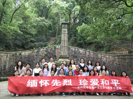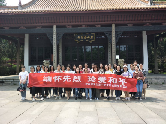 为提高党支部凝聚力,加强党员修养,2019年4月9日中午教育科学学院学生第一党支部在支部书记董晓娅同志的带领下,湖南师范大学内国民革命军陆军第七十三军抗战阵亡将士公墓及第四路军阵亡将士麓山忠烈祠处开展了以“缅怀先烈 珍爱和平”为主题的主题党日活动。
