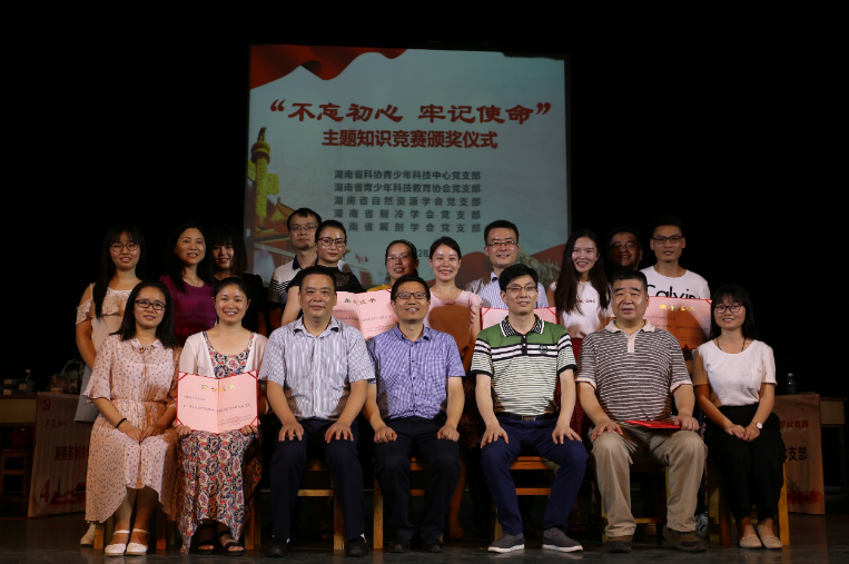 为深入学习贯彻习近平新时代中国特色社会主义思想和党的十九大精神,推进“两学一做”学习教育常态化、制度化,为加快建设富饶美丽幸福新湖南作出新的更大贡献,在中国共产党建党97周年到来之际,6月28日下午,省科协青少年科技中心党支部联合派驻学会指导党建工作的省青少年科技教育协会、省自然资源学会、省制冷学会、省解剖学会党支部,在我校举办了“不忘初心、牢记使命”主题知识竞赛。省科协机关党委书记马文胜、省科协青少年科技中心主任陈紫封、我校马克思主义学院副院长阮东彪教授担任评委,我科学教育专业学生党员代表观摩了比赛。