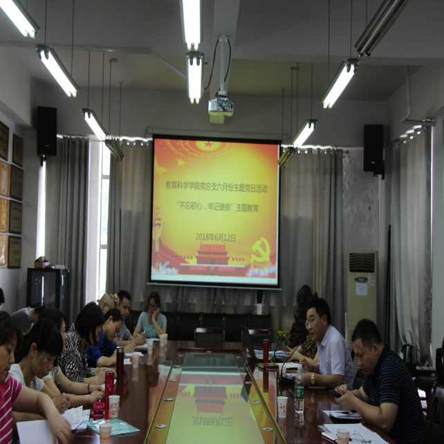 6月12日下午,教育科学学院党总支在特立楼A栋208会议室开展了“不忘初心、牢记使命”主题教育党日活动。此次党日活动由教科院党总支书记陈天涯主持,教科院全体师生党员参与了本次主题教育党日活动。