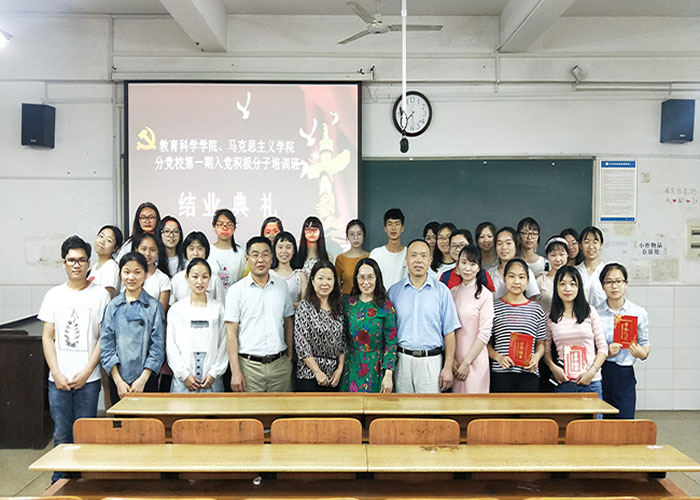 5月30日晚,教育科学学院、马克思主义学院分党校第一期入党积极分子培训班结业典礼于怀中楼南栋305隆重举行,教育科学学院分党校校长陈天涯、副校长张俭明和马克思学院分党校校长谭玉兰副校长谭小红出席仪式,分党校常务委员付淑敏担任主持,共86名学员参加了典礼。