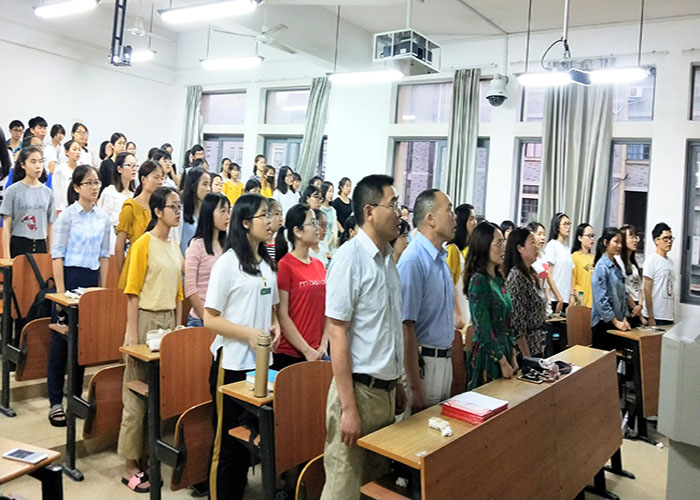 典礼分为七个议程。典礼在庄严肃穆的《国际歌》歌声中拉开帷幕。随后,谭小红、张俭明分别宣读结业学员名单和优秀学员名单,并由谭玉兰为优秀学员颁奖。马克思主义学院16级思想政治教育1班汤丽平作为学员代表发言。她表示作为一名入党积极分子,应从认识和责任两方面坚定成为一名中国共产党党员的决心,将习近平总书记提出的“爱国、励志、求真、力行”的殷切期望落到实处,在学习、工作中严格要求自己,努力成为全面发展的社会主义合格建设者和可靠接班人。