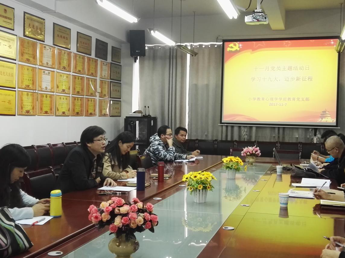 为积极响应学校党委、院党总支关于认真学习贯彻落实党的十九大精神的号召,把思想和行动统一到党的十九大新思想、新部署、新要求上来。根据院党总支的安排,在117日、119日,我院三个教师党支部和三个学生党支部准时开展每月主题的党日活动。