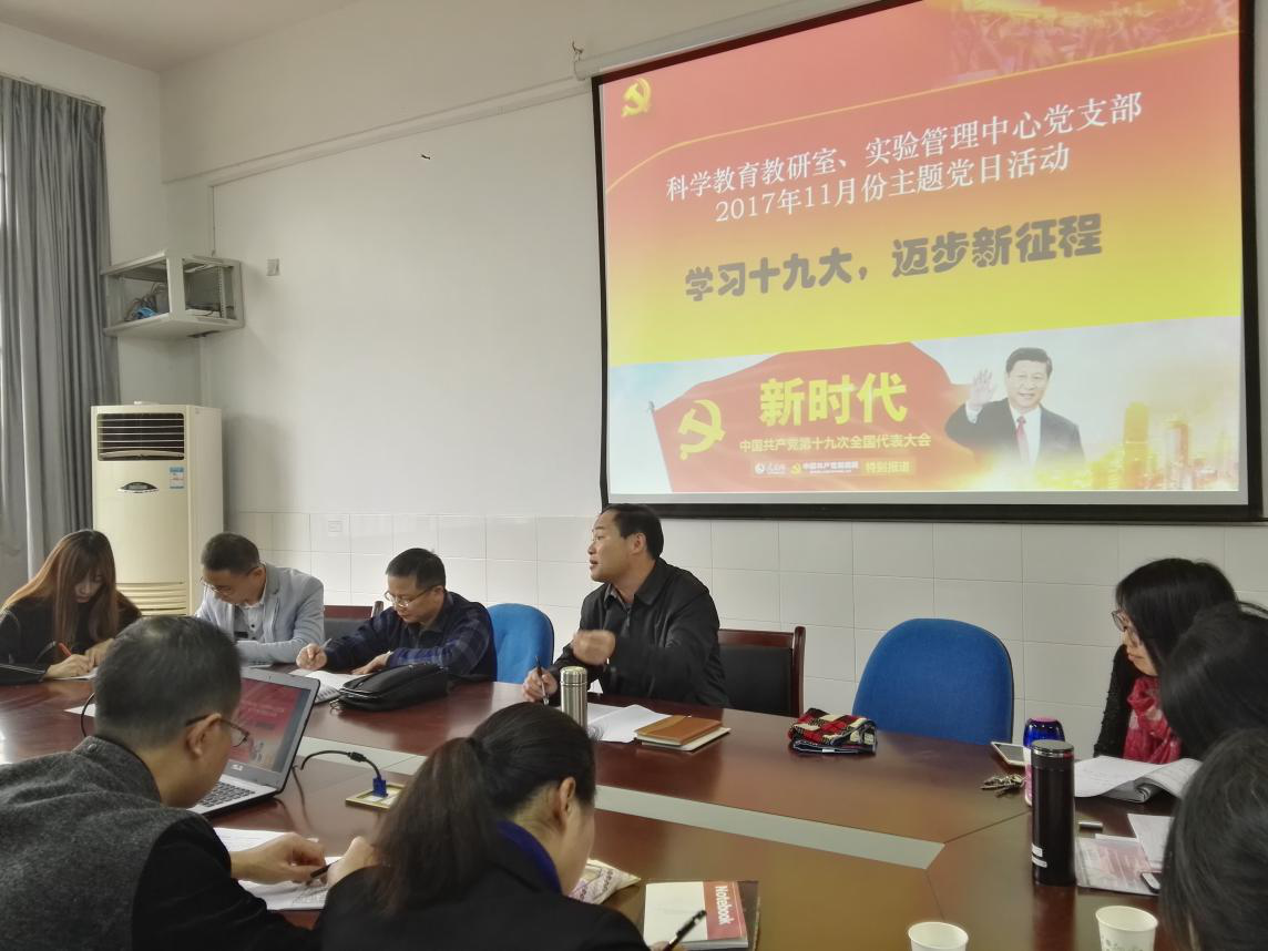 本月党日活动的主题是“学习十九大,迈步新征程”,参加者有全体党员,院班子成员以普通党员的身份参加了学习。按院党总支的安排,总支委员王建平、胡春光、张俭明、李飞同志分别在各支部上党课,他们以精彩的语言介绍了十九大的盛况,传达了十九大精神。