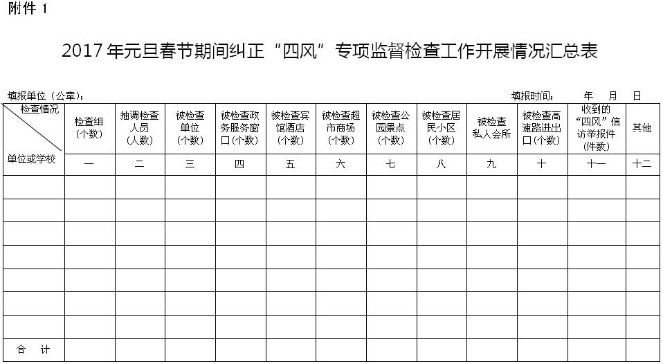 附件:1.2017年元旦春节期间纠正“四风”专项监督检查工作开展情况汇总表