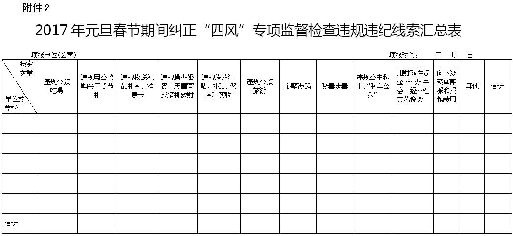 2.2017年元旦春节期间纠正“四风”专项监督检查违规违纪线索汇总表