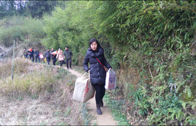 在村干部带领下,我们来到贺胜华家。贺胜华45岁至今未婚,父母因病亡故后欠债,虽然具备一定的劳动能力,但2015年10月份因为给他人修房子,不慎摔伤,双腿至今行动不便,家住偏远的山顶,姐姐偶尔会去照顾。支部详细询问了他的生活情况和目前身体恢复进展情况,并送上了慰问金和新年祝福,叮嘱他目前要休养身体,遇有特殊情况和困难,可通过扶贫队员及时反馈,共同商讨解决。交流中,双方就下一步帮扶工作与帮扶措施进行了探讨,为后续精准扶贫打下基础。走访过程中得知王俊连老人目前在深圳女儿家治病,支部托人送去了慰问物资与新年祝福。