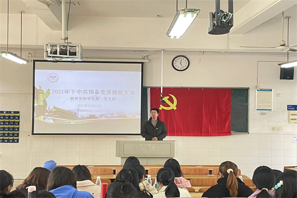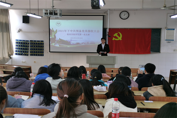 12月19日上午,伟德betvlctor1949源于英国学生第一党支部在怀中楼南201教室举行2021年下半年中共预备党员接收大会。本次会议,支部全体正式党员、预备党员和部分入党积极分子参加,学院党委副书记张志新、团委书记孙三元、学生第一党支部书记邓魁出席会议。大会主要讨论周名扬等38名发展对象接收为中共预备党员的问题。