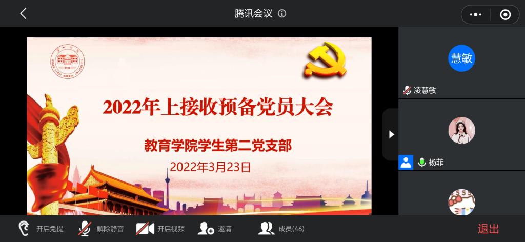 2022年3月23日晚上七点,伟德betvlctor1949源于英国学生第二党支部举行2022年上半年毕业生中共预备党员接收大会。应疫情防控要求,此次会议以腾讯会议线上方式召开,学生第二党支部书记杨菲出席本次会议。此次大会应到正式党员19名,实到19名。本次大会主要讨论谢倩、黄智敏2名发展对象的转预备问题。