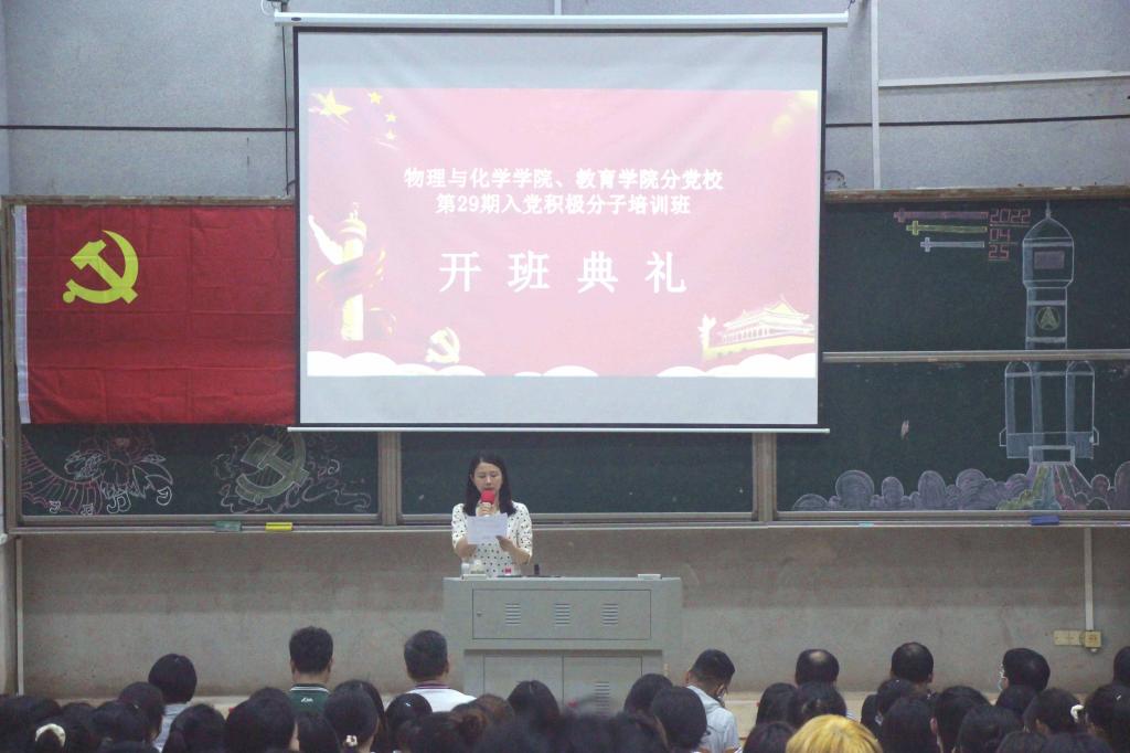 4月25日晚7点,伟德betvlctor1949源于英国和物理与化学学院分党校第29期入党积极分子培训班开班典礼于怀中南110教室如期举行。物理与化学学院党委书记陈志武、伟德betvlctor1949源于英国党委副书记张志新、伟德betvlctor1949源于英国副院长黄月胜、陈华仔、物理与化学学院副院长许兰、物理与化学学院副处级组织员李建亚、伟德betvlctor1949源于英国学工办主任刘军、伟德betvlctor1949源于英国学生第一党支部书记邓魁、学生第二党支部书记杨菲莅临活动现场。175名入党积极分子积极参与开班典礼。此次典礼由物理与化学学院学工办主任、学生党支部书记曾琳娜主持。