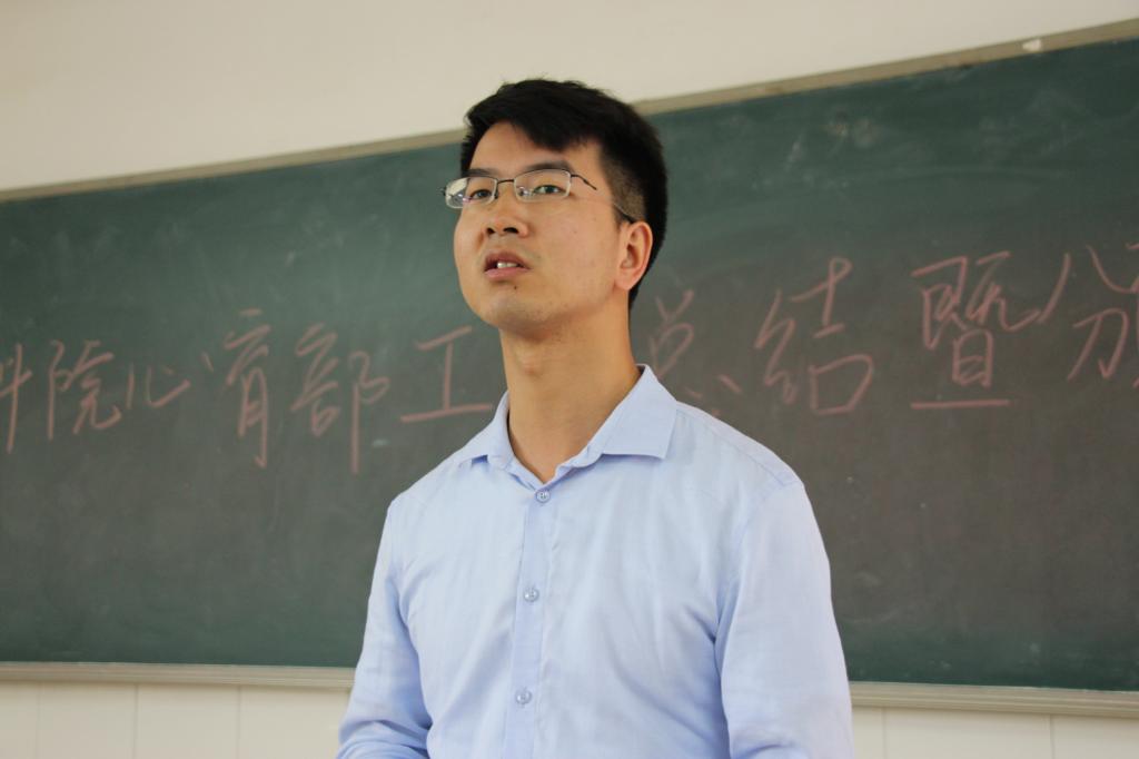 活动第二项,心育部指导老师发言。指导老师邓魁老师首先向各班级心委、心育部全体成员表示感谢,对大家一年来的工作给予了充分的肯定。紧接着,邓魁老师简单介绍了我院“师之翼”特色成长辅导室的初步建设,鼓励大家积极参与进来、共同宣传好、维护好、开展好这个特色成长辅导平台。最后,邓魁老师向各班级心委提出了三点期望:一是要加强学习。要充分利用学校的资源,加强自身的心理素养,为做好心委工作奠定一个坚实的基础;二是要加强沟通。心委作为学生与老师之间的桥梁,要多与班上同学、辅导员老师沟通,保持密切联系,确保把问题控制在事发之前;三是要加强实践。要在班上多开展心理活动,不搞形式主义,要切切实实通过活动开展帮助同学们健康成长。