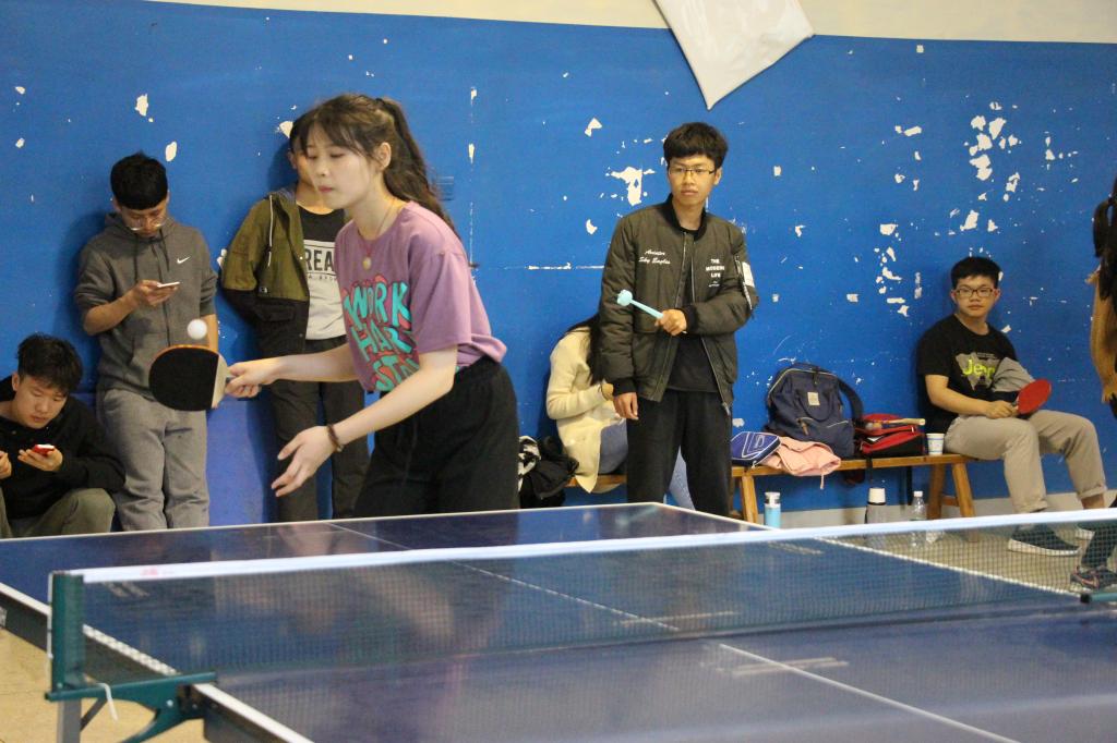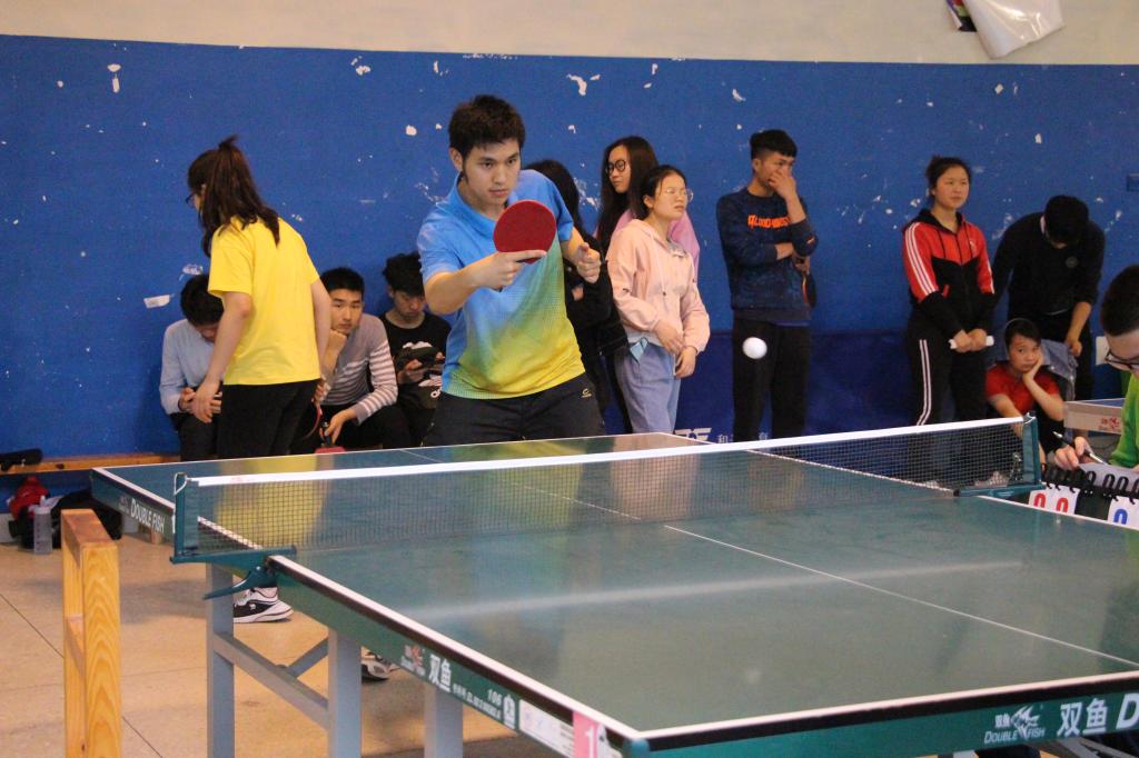 此次比赛为团体赛项目,分为小组赛、半决赛和决赛三个阶段。小组赛中,教科院男队和女队均获得三连胜,以小组第一的成绩进入半决赛。半决赛中,因对手在比赛规定时间内未能及时到场,所以我院男队直接进入决赛,和数学与计算机学院男队争夺桂冠。决赛一开始,空气中便充斥着紧张和凝重的气氛。时间一分一秒的过去,我队队员在球台上与数计院队员你攻我守,你争我夺,战况异常激烈,双方多次打成平手。比赛第四局后,总比分呈现出2:2的胶着局面。第五局争夺进入白热化状态,最终我院以几分之差惜败于对手,获得男子非体育组第二名。