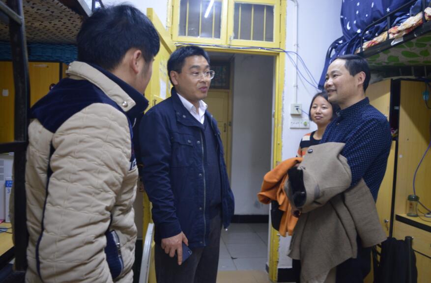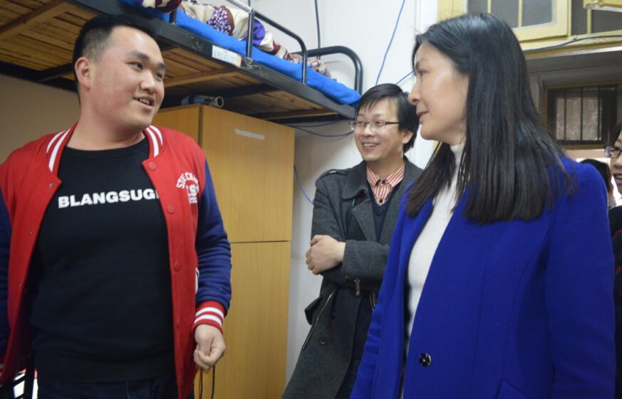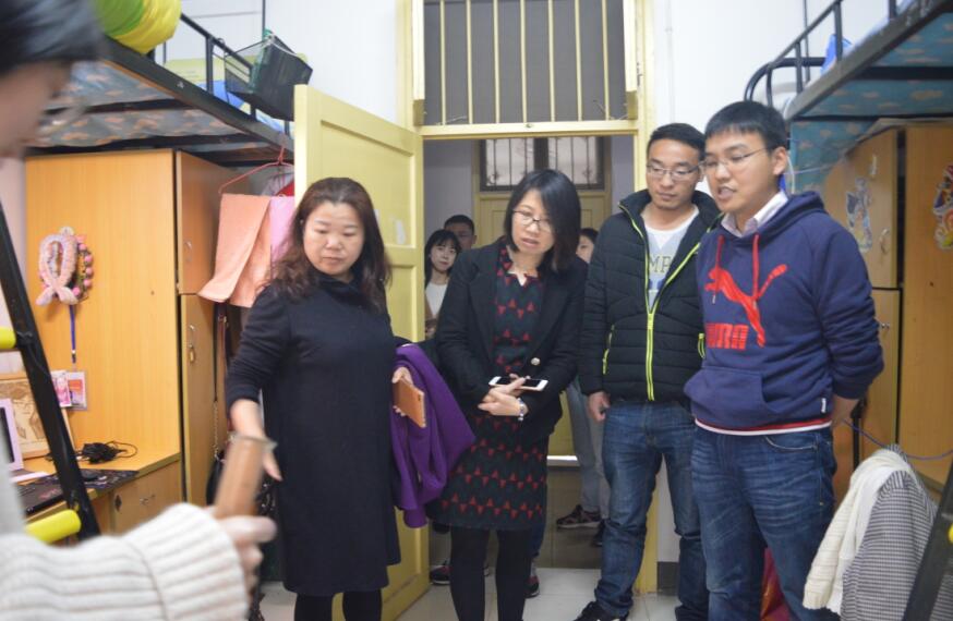 2017年2月19日下午,教育科学学院领导蒋蓉、陈天涯、张俭明、王建平、胡春光、刘丽群率领全体专职兼职辅导员老师及学生干部一起来到学生公寓,向同学们致以新学期问候,了解学生的学习生活情况,认真检查了公寓安全卫生状况。