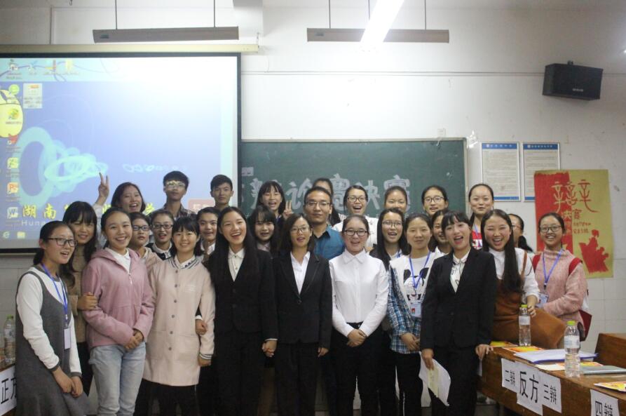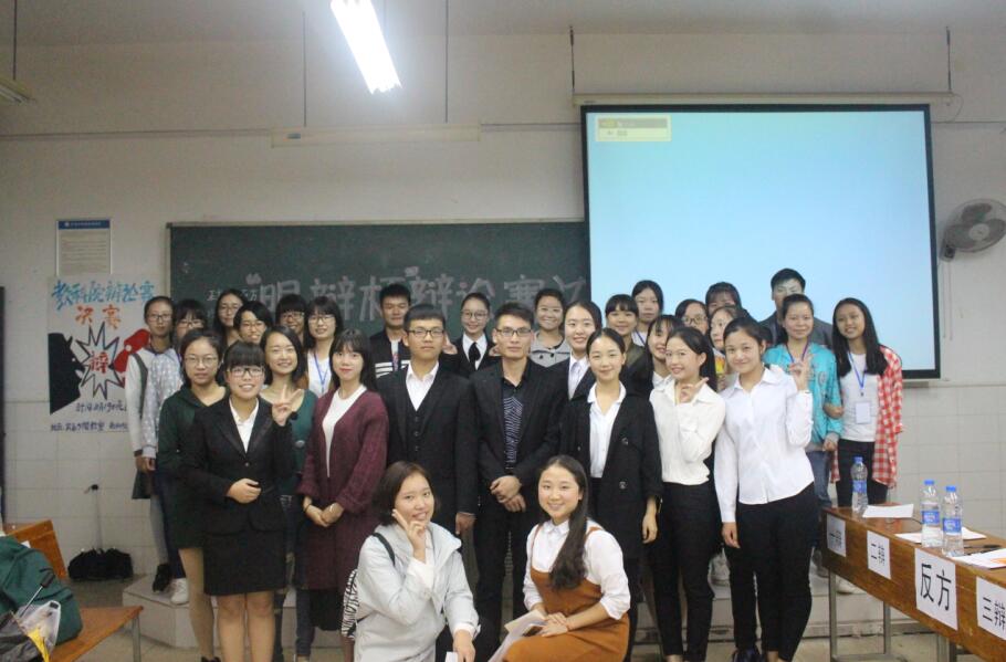 2016年10月19日晚,教育科学学院学生会语工部在实验楼b栋502、503教室成功举办了主题为“教育应重视人格培训多于知识培训,还是知识培训多于人格培训”辩论赛决赛。胡志伟老师、主席部主席张蓝方、卫生部部长李雯担任赛场1的评委,江华军老师、宣传部部长谢慧霞、社团联合会主席王佳蓓、体育部部长裴秋慧担任赛场2的评委,近200余名同学到场观赛。