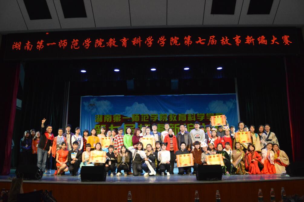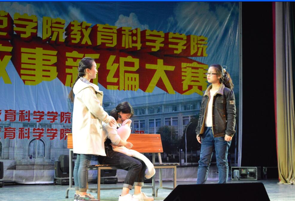 2016年4月6日晚,教育科学学院第七届故事新编大赛决赛在科技楼演播厅隆重举行。院领导蒋蓉、谭玉兰、张俭明及陶青、刘军、文红、董晓娅、石慧、罗娱等辅导员老师应邀出席并担任评委,教科院400余名师生参与了此次大赛。