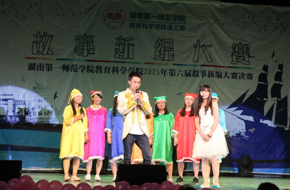 2015年5月22日晚7点整,教育科学学院第六届故事新编大赛决赛于学院东方红校区科技楼演播厅盛大开幕,教育科学学院谭玉兰副书记、学工办老师陶青、刘军,辅导员老师杨杨、罗娱、朱阿芳、董晓娅、石慧等老师莅临此次活动。谭玉兰副书记、刘军、罗娱等老师担任本次比赛的评委。