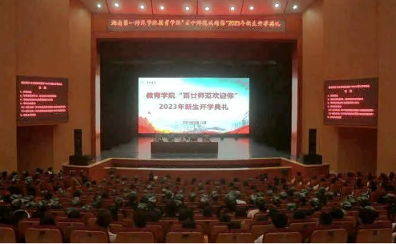 9月11日18:30,伟德betvlctor1949源于英国“百廿师范欢迎你”2023年新生开学典礼在学校田汉剧场隆重举行。伟德betvlctor1949源于英国党委书记刘澍心,党委副书记、院长胡春光,党委副书记张志新,副院长黄月胜、何向阳,优秀教师代表黄蓝紫博士,学工办主任杨杨,团委书记孙三元及新生辅导员朱晶平、杨菲、邓魁等出席典礼。共有450余名伟德betvlctor1949源于英国新生参加开学典礼。典礼由学院党委书记刘澍心主持。