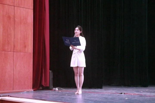 接着,来自2020级学前国际1班的郭湘楠同学作为老生代表发言。她结合自己在大学期间的学习经验、生活体会,鼓励同学们把握青春,勇于尝试,走出舒适区,绽放自身才华,成就更好的自己。