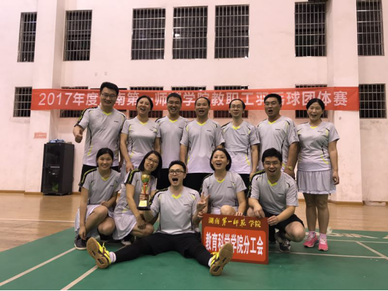 我院羽毛球队由陈天涯书记、蒋蓉院长担任领队,张兰兰、陈瑶担任教练、分工会刘军副主席担任队长,张兰兰、陈瑶、李金国、王建平、吴昌义、唐建生、刘丽群、曾晓等担任主力。在第一天分循环赛中,我院一小组第二的成绩挺进八强。在第二天的淘汰赛中,我院与另一组第一名对阵,队员们精心布阵,咬紧牙关,顽强拼搏 ,屡战胜强劲对手,进入四强。在半决赛中,队员们克服疲劳、饥饿等困难,任坚持比赛,赢得季军。