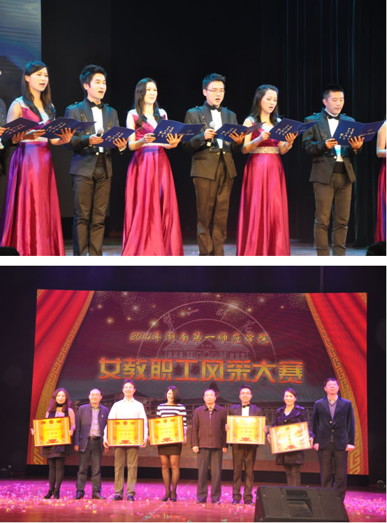 3月25日晚,由校工会组织的“2014年度女教职工风采展示大赛”在东方红校区音乐剧场隆重举行。我院分工会派出了以院领导蒋蓉、谭玉兰为首的20人代表队参赛。我院节目《为你读诗》内涵丰富,形式独特,演技精湛,在19个节目的比拼中获得较高表演分,荣获二等奖,展示了我院的不凡实力和靓丽风采。