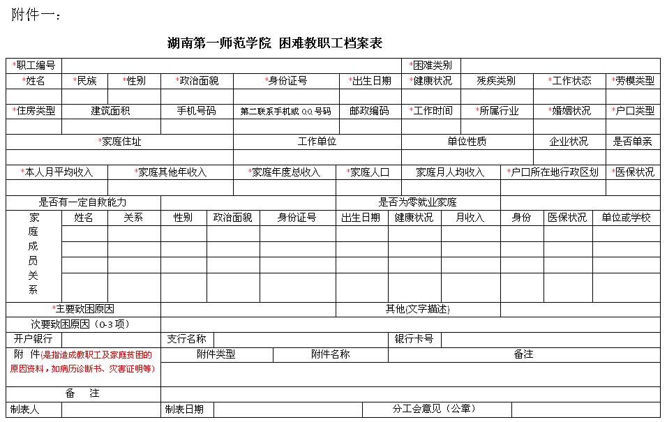 1.职工编号:从01开始编;困难类别:请填写“低保户”、“低保边缘户”或“意外致困户”。
