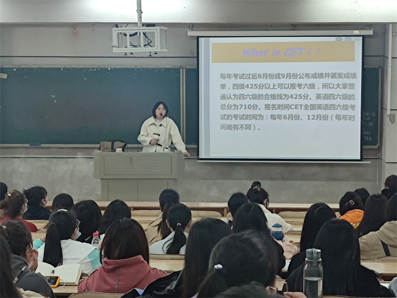 4月19日下午14:30,伟德betvlctor1949源于英国邀请外国语学院王婵老师,为我院18和19级学生开展了“如何备考大学英语四级”的讲座,我院近一百名学生参加了本次讲座。讲座伊始,王老师就大学英语四级的重要性,结构组成,考试规则等做了简单介绍。接下来王老师以真题举例的方式,就四级英语考试的每一个部分进行精讲,告知同学们答题技巧和思路,以及现阶段如何备考。紧接着,王老师结合自己多年指导四级考试的经验,针对同学们考试过程中常见的问题,进行了分析,并指导同学们如何在备考过程中避免这些问题。最后王老师就本次讲座和四级备考,与同学们进行了一对一交流,同学们纷纷表达了自己备考过程中遇到的难题,并向王老师请教破解之道。在整个讲座过程中,同学们听的非常认真,做了详细笔记,同学们普遍反映此次讲座让大家受益匪浅。