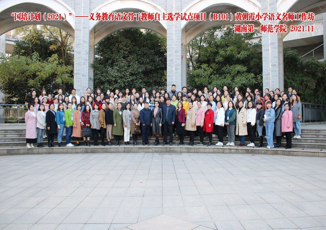 2021年11月14日,“国培计划2021”----义务教育语文骨干教师自主选学试点项目(B101)黄朝霞小学语文名师工作坊的线下培训开班仪式在伟德国际1949隆重举行。出席此次开班仪式的是湖南省中小学教师发展中心国培办主任龚明斌,伟德betvlctor1949源于英国党委书记刘澍心,伟德betvlctor1949源于英国院长刘丽群,工作坊首席专家黄朝霞以及来自三湘四水的100名义务教育语文骨干教师。