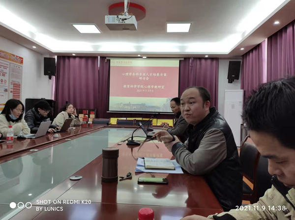 首先,心理学教研室主任刘文整体介绍了2021版四年制本科人才培养方案修订背景和主要原则。围绕新的人才培养要求,与会人员经过研讨,对人才培养方案的修订提出了宝贵意见。黄月胜副院长指出毕业论文选题应该靠近小学生心理,同时建议在学生发展的方面也应该加强,多开展年级与课程相结合的第二课堂和凸显心理学特色的活动。教研室众位教师就大学生应掌握的师范技能,课堂教学能力和研究能力进行了深入讨论,发表了自己的看法并提出了许多宝贵的意见。例如创造性的开展实训课,加强培养学生的教师技能,培养学生的语言表达能力等。最后黄月胜副院长进行总结,希望心理学专业在吸纳各方建议的基础上,以学生为中心,适当提高心理学专业人才培养的目标和视野,建构更加符合学生长期发展的人才培养方案。