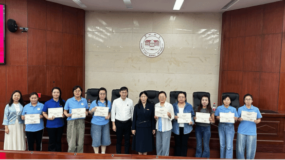 仪式现场还举行了隆重的聘书授予与表彰环节。胡春光院长为各区县项目负责人颁发聘书,王国锋副教授为各县区管委负责人颁发聘书,胡春光、王国锋、余丽珍、李映红共同为新疆学科工作坊坊主及优秀学员授予聘书与荣誉证书。一张张聘书、一份份证书,不仅是对学员研修成果的肯定,更象征着 “湘新共育” 的责任传递,标志着项目正式进入 “本土辐射、实践深化” 的第二阶段。