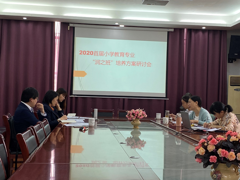 研讨会由曾晓洁副院长主持,主要围绕首届小学教育专业“润之班”学生的培养方案、遴选标准与流程、导师的遴选与考核细则、相关部门及人员的工作职责等进行了商讨与初步确定。后续筹备工作也正在紧锣密鼓的进行之中,小学教育专业“润之班”不日将正式开班。