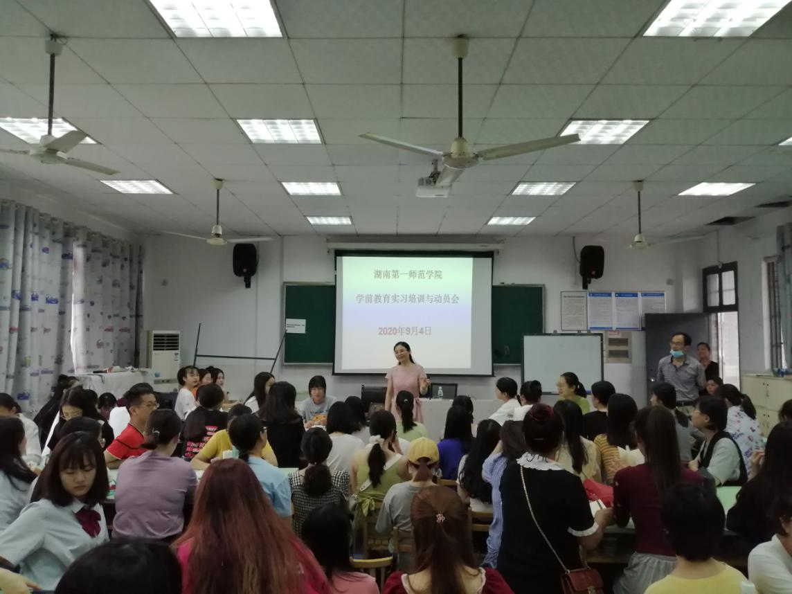 9月4日上午,学前教育专业举行了2017级教育实习培训与动员会。马王堆国际幼儿园园长向松梅受邀进行专题培训讲座,2017级学前教育专业全体同学、学前教育教研室全体教师参加会议,学前教育教研室主任、专业负责人万湘桂老师主持会议。