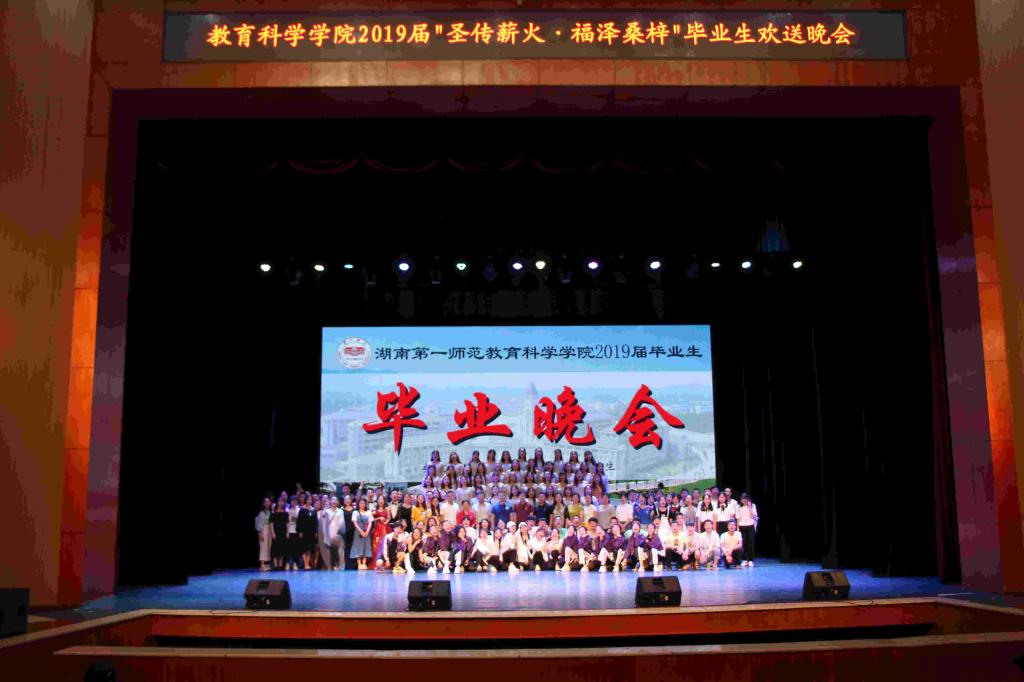 6月3日晚,教育科学学院2019届毕业生毕业典礼暨“圣传薪火,福泽桑梓”毕业晚会于田汉剧场隆重举行。伟德国际1949校长童小娇、教务处处长蒋蓉、东方红小学校长周大战、周南梅溪湖小学校长徐信、教育科学学院党政负责人陈天涯、胡春光、王建平及教师代表出席典礼。教科院党总支副书记张俭明主持本次典礼,700余名毕业生到场参加了典礼。