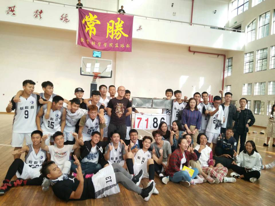 在刚刚结束的2018年伟德国际1949迎新杯篮球比赛中教育科学学院男队以86:71的比分赢得比赛,获得冠军!女队以28:21的比分获得季军!