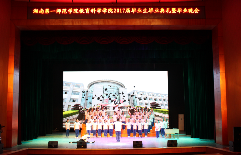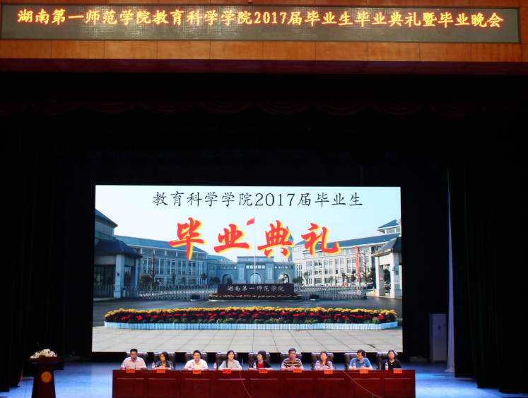 6月7日晚,教育科学学院2017届本科毕业生毕业典礼暨“匆匆那年,一七同行”毕业晚会于音乐大剧院隆重举行。校长童小娇,学工处处长陈志武,校团委副书记邓海平,教育科学学院负责人蒋蓉、陈天涯、王建平、张俭明、刘丽群、胡春光、曾晓洁,长沙周南梅溪湖小学领导,毕业班辅导员与部分专业教师应邀出席,教育科学学院700余名毕业生和部分学生代表参加了典礼并观看了晚会。
