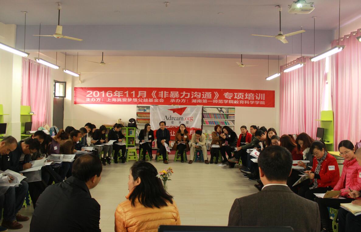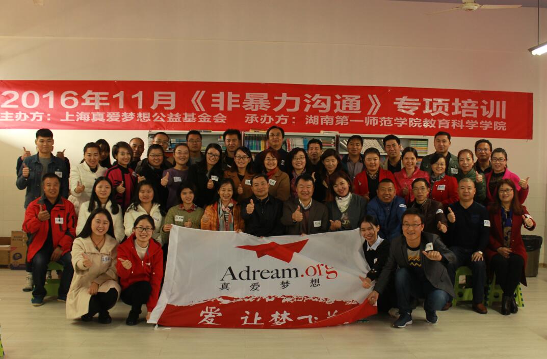 2016年 11月11日―12日,由上海真爱梦想公益基金会主办,伟德国际1949教育科学学院承办的“非暴力沟通”专项培训活动(长沙站)在伟德国际1949教育科学学院梦想教室成功举行。本次活动参与成员有:上海真爱梦想公益基金会课程服务部培训项目经理华韦健;上海真爱梦想公益基金会南区的实习员陶欣意、陈远莉;伟德国际1949学生志愿者覃梦铃;伟德国际1949教育科学学院的六名学生以及来自全国各省的30多位梦想教师,他们共同开始了爱的语言——非暴力沟通!