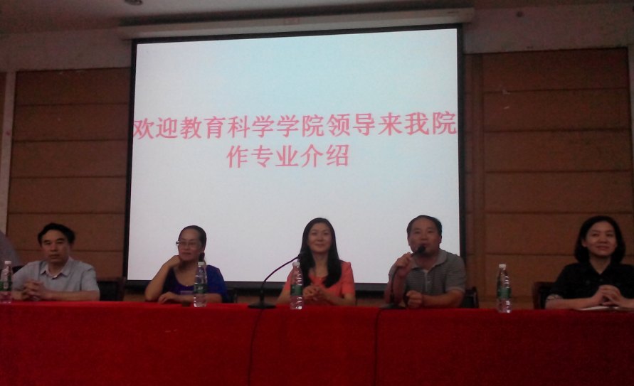 蒋院长详细介绍了教育科学学院的师资队伍、专业设置、科研与教学的情况,重点介绍了往届科学教育专业学生取得的瞩目成绩;谭书记就大学生的管理、生活及制度规范进行了说明;张院长就科学教育的发展现状及科学教师的素养进行了解读;王院长就大学学习方式的转变、科学教育专业人才素质要求、未来前景等进行了勾勒;庄远红老师为科学教育教研室主任,她从科学教育专业的培养目标、课程结构、教育实践等方面进行了充分的解释。本次介绍会提高了学生的专业认识及专业憧憬,也为他们两年后顺利过渡到我院学习提供了前提与基础。