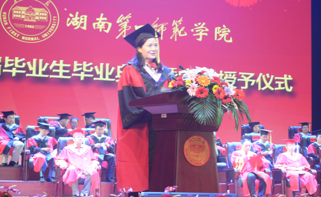 典礼在雄壮的国歌声中拉开序幕。校党委书记彭小奇致毕业典礼贺辞,他代表学校向2015届全体毕业生表示衷心祝贺,向悉心培育、指导同学们顺利完成学业的全体老师、全校干部职工,向为同学们提供了无私援助的社会各界人士,表示衷心的感谢,向来参加典礼的学生家长、校友表示热烈欢迎。他希望毕业生走出一师踏上新的人生征途后,能以扎实的知识和出色的能力,能以博大的胸怀和包容的精神,传承一师气质,肩负社会责任,让梦想的翅膀,为国家和社会增添更多的正能量。