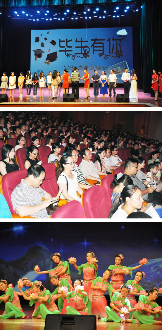这次晚会,同学们通过歌舞、小品、啦啦操等艺术表演形式,讲述了校园生活中一幕幕感人的故事,展现了当代大学生积极、健康、向上的精神面貌,表达了对毕业生的美好祝愿。晚会高雅的艺术气息和高昂的激情深深感染了现场每一位观众。