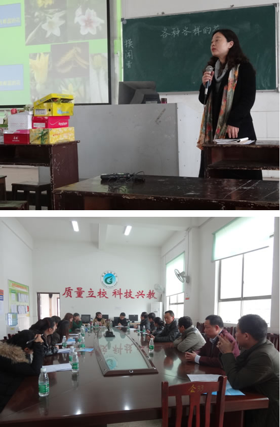 首先,回访活动在科学国培学员高撑小学邓彬妮校长主讲的科学课《各种各样的花》中拉开序幕。科学国培首席专家张平柯教授、科学国培授课教师蔡海军副教授、科学国培授课教师陈莉副教授和科学国培班主任老师袁梦,邵阳市教育局胡宏杨副局长、师训科范中杰科长、阳静副科长,邵阳市北塔区教育局李峰华副局长、曾丽燕科长、唐跃忠专干以及邵阳市小学科学国培老师代表一起参与了课堂观摩。课后,张平柯教授和陈莉副教授分别从教学理念、教学方法、教学内容、教学技能等方面对邓老师的课进行了点评,给予了高度的评价,并与大家交流了从事科学课程教学工作的体会和感想。