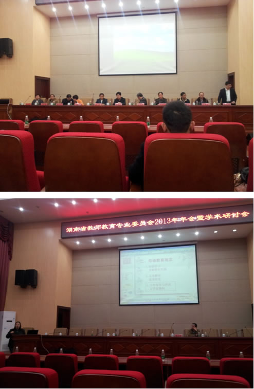 2013年11月23日,我系陈梦稀、曾晓洁两位老师参加了湖南省教师教育专业委员会年会。陈梦稀教授作为专业委员会副理事长在大会主席台就座,曾晓洁老师代表学校做《农村小学语文教师专业发展的瓶颈》报告。