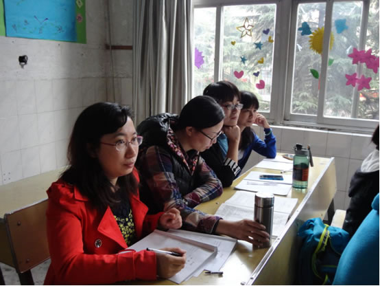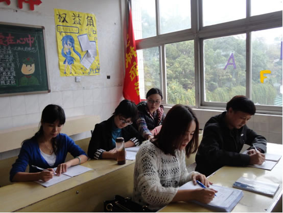 为了加强交流,提高教学水平,促进青年教师的成长,2013年11月8日上午,教科系语文教研室按照学期教研室工作计划开展了一次公开课教研活动。由杨雪梅老师执教《阅读与写作(一)》和殷志纯老师执教《阅读与写作(三)》。语文教研室当日没课的教师都参加了此次教研活动,教科系主管教学的副主任王建平同志也参加了此次活动。