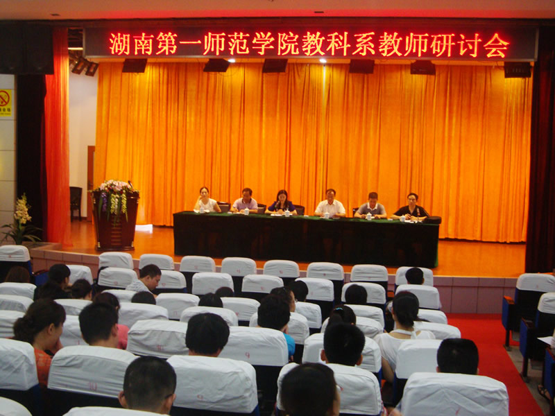 23日上午教育科学系系主任蒋蓉教授作了系部形势分析与未来发展报告,全面分析了系部目前的现状、存在的问题、建设目标与努力方向;然后系部各位副主任及副书记就各自分管工作进行了主题发言。下午则分教研室进行讨论,就学科与专业发展规划、教研教改、教材建设等进行了探讨交流。24日全体教师外出进行了素质拓展训练。