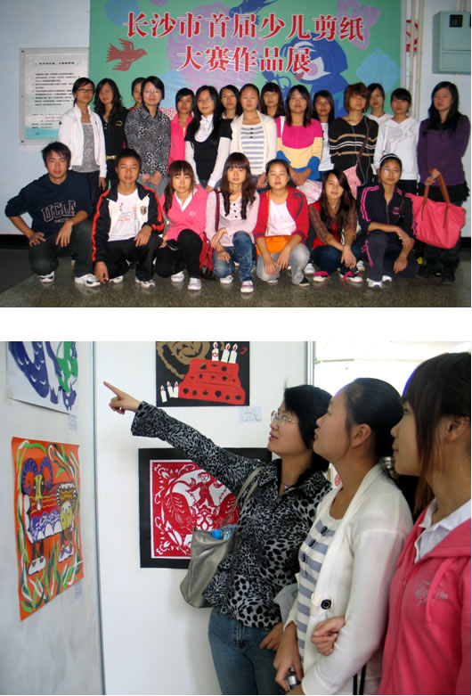 2010年10月9日上午9点,在湖南省图书馆一楼报告厅举行了长沙市首届少年儿童剪纸大赛作品展开幕式。长沙市民间文艺家协会剪纸艺术委员会会长涂世训做了《弘扬传统文化 繁荣剪纸艺术》的讲话,并现场颁奖。我院小教部获得由湖南省图书馆、长沙市教育局、长沙市文联颁发的长沙市首届少儿剪纸大赛优秀组织奖,小教部体育美术教研室主任张容舟领取了获奖牌匾和证书。小教部09、08、07级同学此次共创作剪纸示范作品1000余幅,有169幅剪纸作品进入湖南省图书馆参加复选,最终获得30个示范作品奖项,其中金奖10个,银奖10个,铜奖10个。539班谭慧玲、538班陈凤、560班谢梅岭、544班龙帅、562班田菁青、562班陈凤、559班谭勇华、584班熊慧娴等同学的剪纸作品获得金奖。