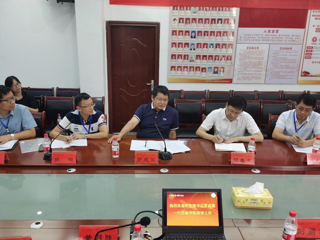 课堂教学质量是人才培养的生命线。为全面了解新学期教学工作运行状态,检查“两性一度”前期研讨学习成效,8月29日上午,校党委书记罗成翼、教务处处长胡春光一行来我院开展期初教学检查工作,学院党政领导班子陪同检查。