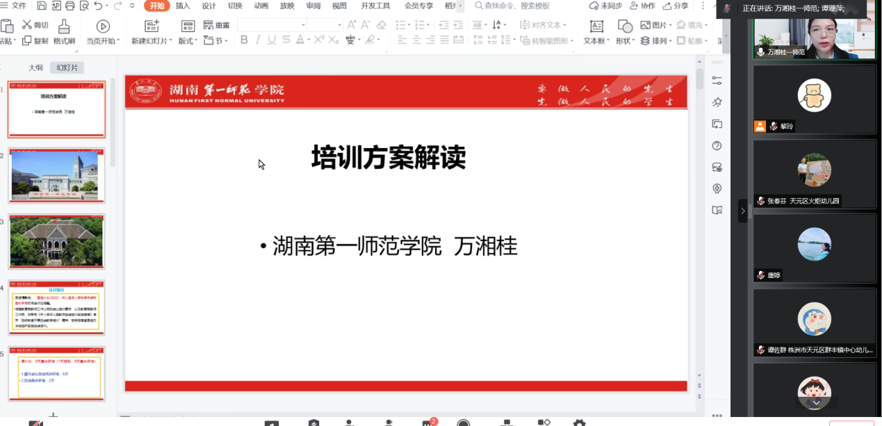 2022年幼儿园与小学科学衔接校园长研修班在腾讯会议上举行了开班典礼。我院首席专家、班主任和100名株洲小学校长与幼儿园园长参加了开班典礼。学前教育系主任、首席专家万湘桂以现场直播的方式在开班典礼上致欢迎辞。她强调近期省内疫情形势依然严峻,我校前期按照国培项目办的要求,及时调整培训实施方案,采用线上研修方式推进项目实施。我校伟德betvlctor1949源于英国党政领导对此次培训高度重视,项目组克服疫情影响,组建强大的专家团队,精心设计研修课程,采用腾讯会议同步直播、异步网络课程学习、在线教学研讨及微论坛等多元化的培训方式,有条不紊地安排线上培训工作,确保学员学有所获。同时,万湘桂主任从培训主题、培训目标、培训的内容、培训方式、考核方法以及培训组织纪律等方面对培训方案进行了详细解读。