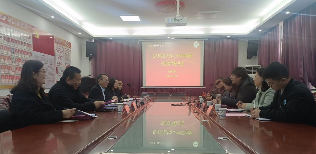 3月23日上午,吉首大学师范学院教务科研处主任符智荣、数计系主任周昱、中文系主任周露芳、学生处主任王庆、数计系副主任石艳平等一行五人来我院考察交流。我院党委书记刘澍心、小学教育系骨干教师邓栩、彭玲艺及我院教科办主任任卓、学工办主任刘军,在特立楼北208会议室热情接待了来访人员。